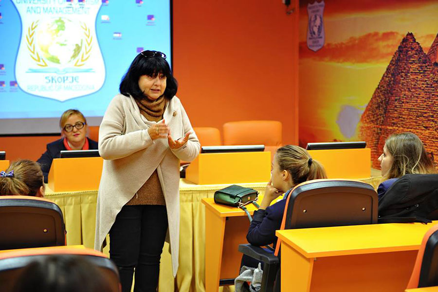 Today, 24th of October 2017, students from our faculty had a unique opportunity to follow a lecture delivered by the eminent prof. Emilija Stoimenova-Canevska, psychotherapist and founder of the Geštalt institute - Skopje. The topic of the lecture: "Gestalt Therapy in function of increasing the HR working potential", according to its actuality, is among the most important and the most exhausted topics in the modern psychology.