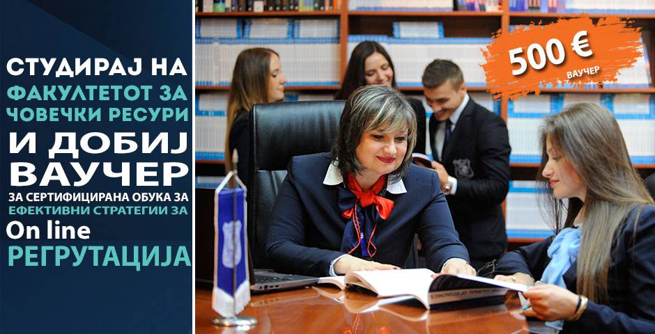 The Faculty of Human Resource Management at UTMS within the enrollment deadlines in the academic year 2017-2018 for newly enrolled students in the first year awards a voucher of 500 EU for certified training for Effective strategies for online recruitment in the function of efficient and effective staffing Organizations. The methodology of the training is interactive and contains real business situations through which students will learn how to apply the theory in a real business context. The training will enable to the students of UTMS professional profiling for successful work as managers of human resources in governmental and non-governmental sector in the country and abroad.
