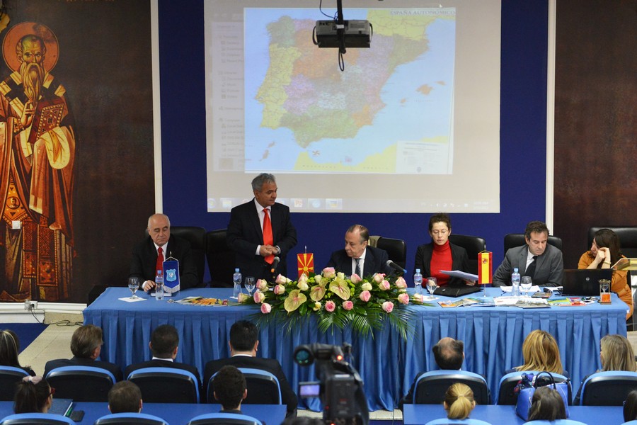 tekst1Презентацијата на Шпанија ја започна амбасадорот Де Галаинена, кој најнапред даде краток приказ за тоа каде се наоѓа неговата земја на светската туристичка мапа, при тоа издвојувајќи ги десетте најдобри туристички дестинации во неговата земја, од кои на прво место се наоѓа Каталонија, веднаш по неа Балеарските острови, а третата позиција ја завземаат Канарските острови. Но, како што потенцираше неговата екселенција, за да има добар туризам неопходна е потребата од добра инфраструктура, односно добри автопатишта, кои како што рече, се особен фактор за развој на туризмот и зголемување на бројот на туристите. Сите овие информации на предавањето беа поткрепени со видео запис, во кој беа опфатени сите главни туристички дестинации и атракции во Шпанија, тргнувајќи од Мадрид, каде е најразвиен таканаречениот градски туризам, па се до Баскиската област.