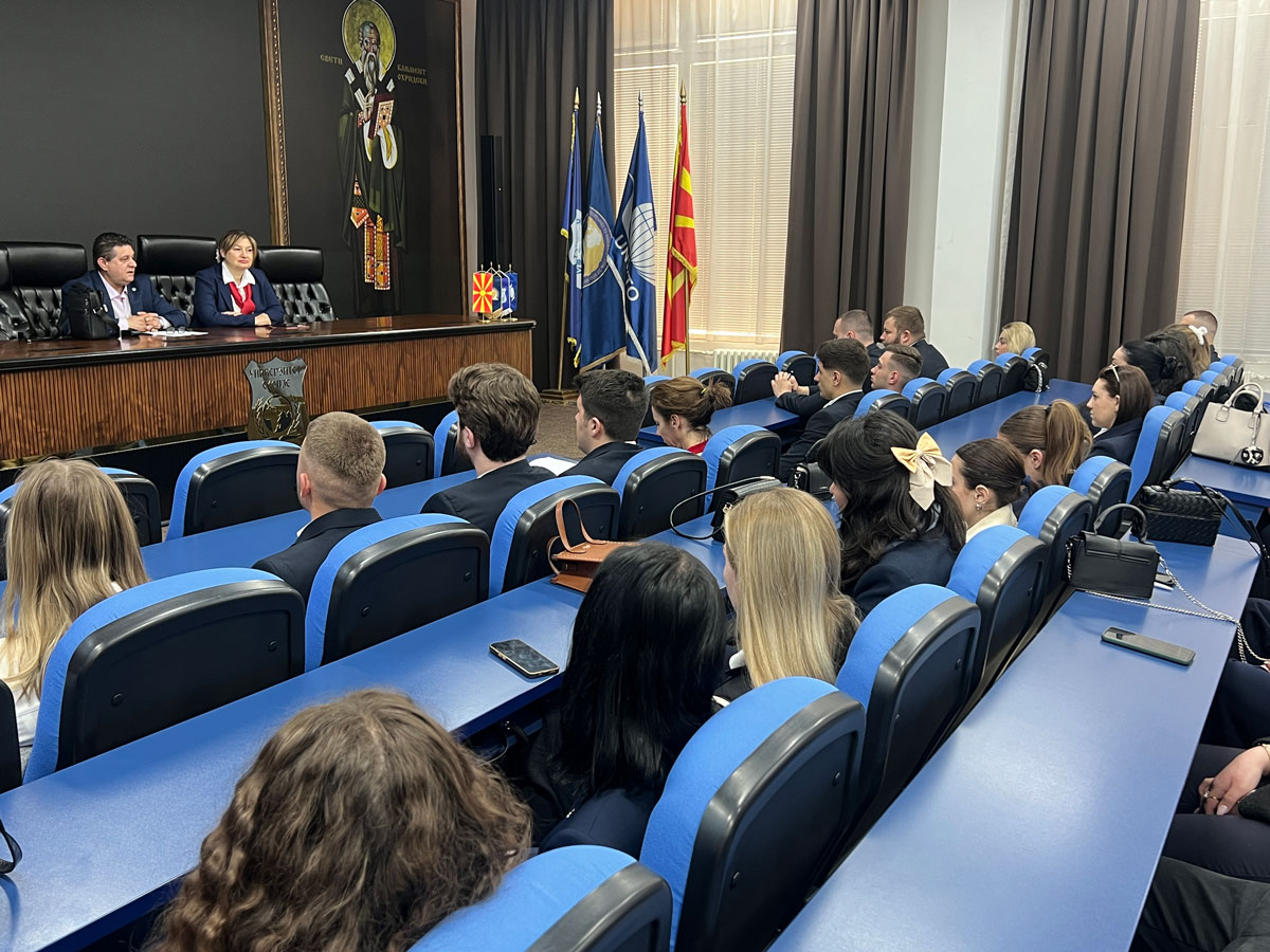 На 11.03.2025 година на Универзитетот Скопје, во рамките на програмата за клиничка настава гостување г-дин Горан Стојановски, искусен ХР менаџер вработен како раководител на секторот за човечки ресурси во АД Мепсо. Оваа посета беше одлична можност за студентите да се запознаат со современи методи за менаџирање на човечките ресури и тоа од еден од најуспешните професионалци во таа област.