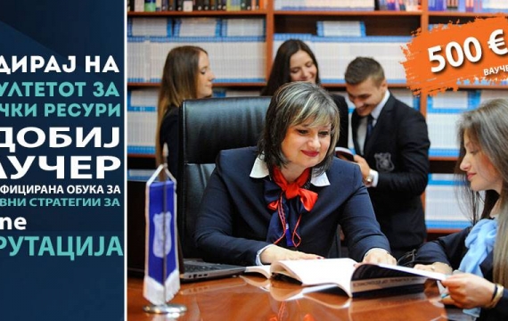 Факултетот за менаџмент на човечки ресурси на УТМС во рамките на уписните рокови во академската 2017-2018 година, за новозапишаните студенти во прва година доделува ваучер од 500 ЕУ за сертифицирана...